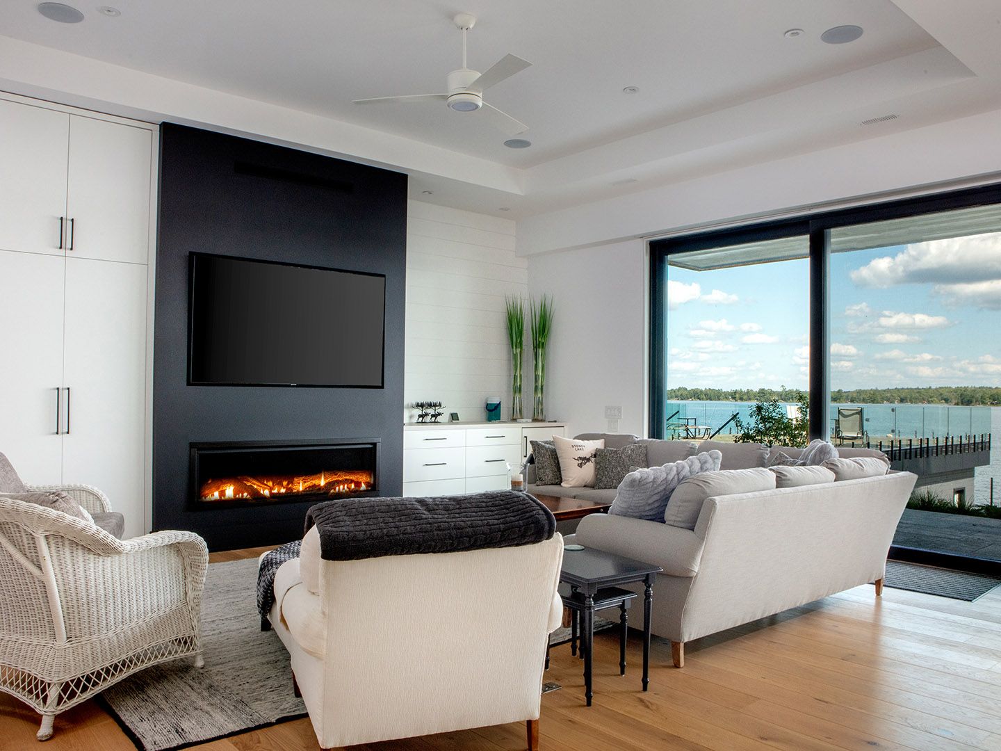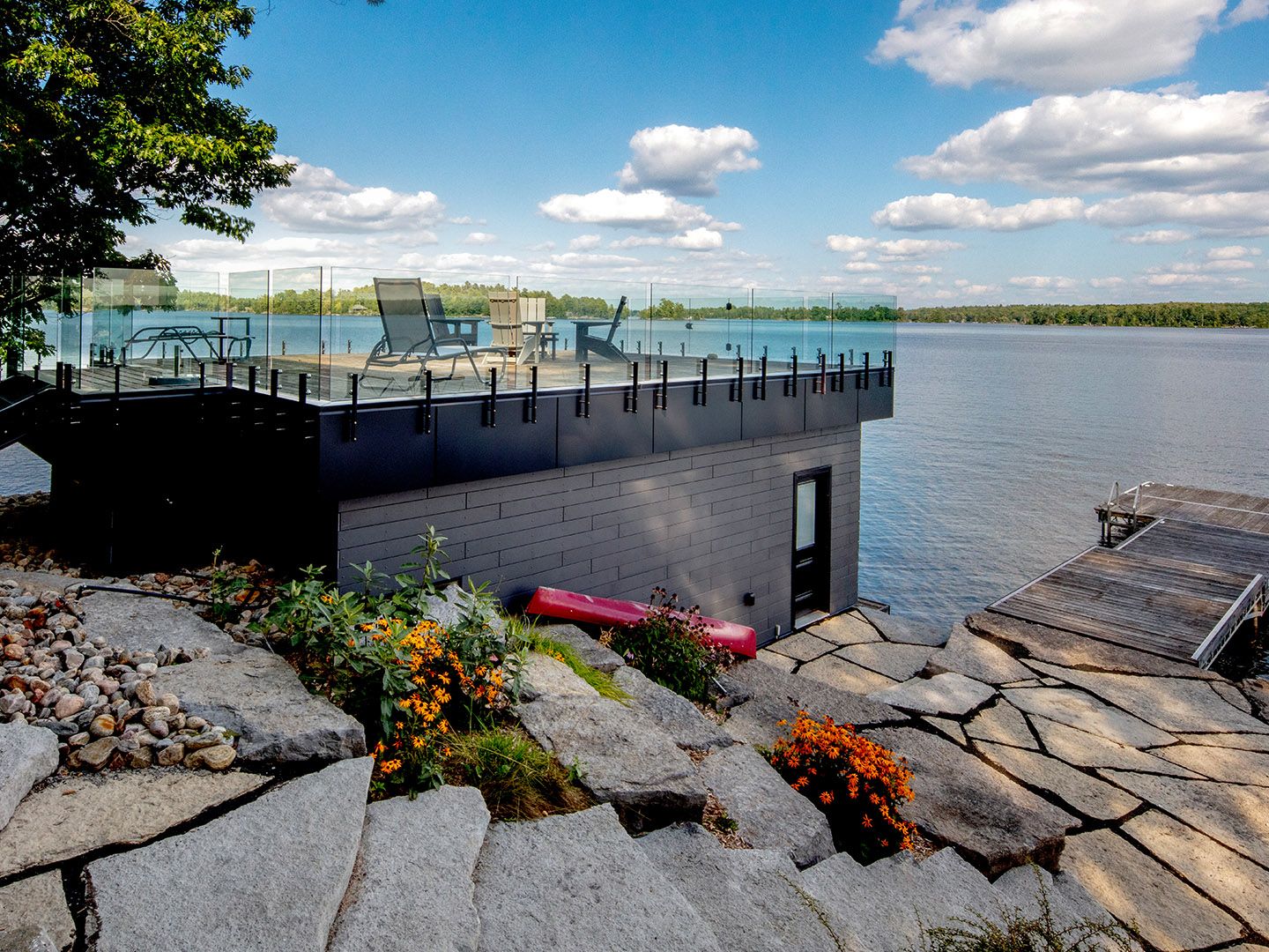 This comprehensive project involved the demolition of an outdated wooden cottage and the construction of a new, modern steel-boned cottage. The new structure is built with an engineered steel frame, ensuring durability and a sleek, contemporary appearance. A standout feature is the large overhang at the front, providing shade and extending the living space outdoors. Complementing this is a 12-foot suspended deck, creating an elevated outdoor area perfect for enjoying panoramic lake views. Inside, the cottage features concrete finished flooring throughout, offering a modern look that is both stylish and easy to maintain.